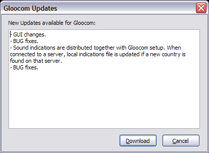 This window displays the latest update file release notes. Click on 'Download' button to download new update or 'Cancel' to close the release notes window