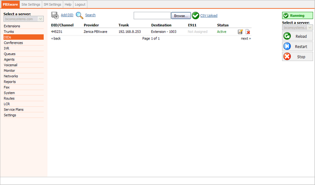 DIDs are used to point all incoming calls (that come over trunks) to specific system destinations. This screen lists all system DIDs with the following details